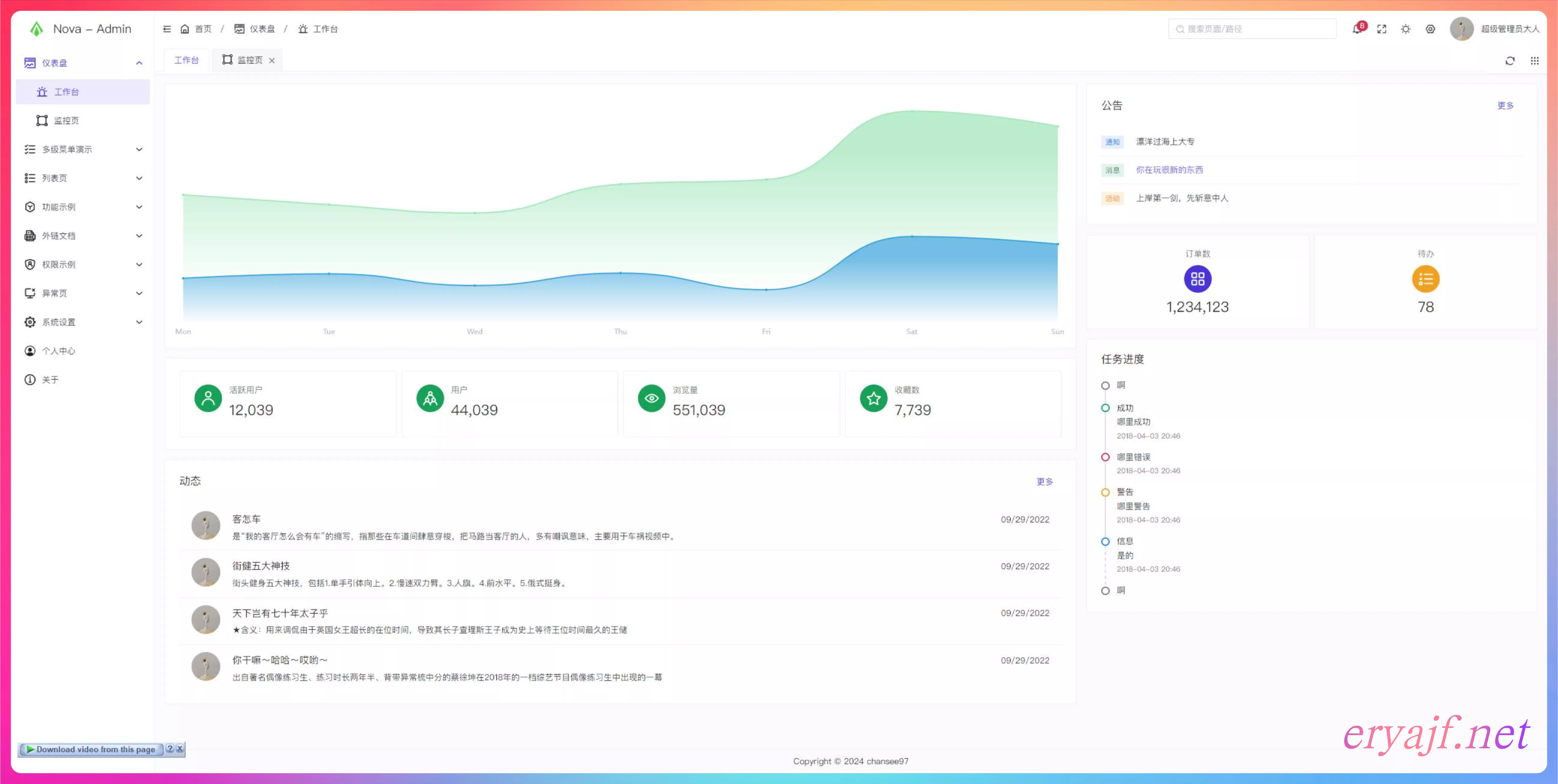 - 项目说明:一个基于Vue3、Vite5、Typescript、Naive UI, 简洁干净后台管理模板,用简单的方式实现完整功能,并尽可能的考虑代码规范,易读易理解无过度封装,方便二次开发。