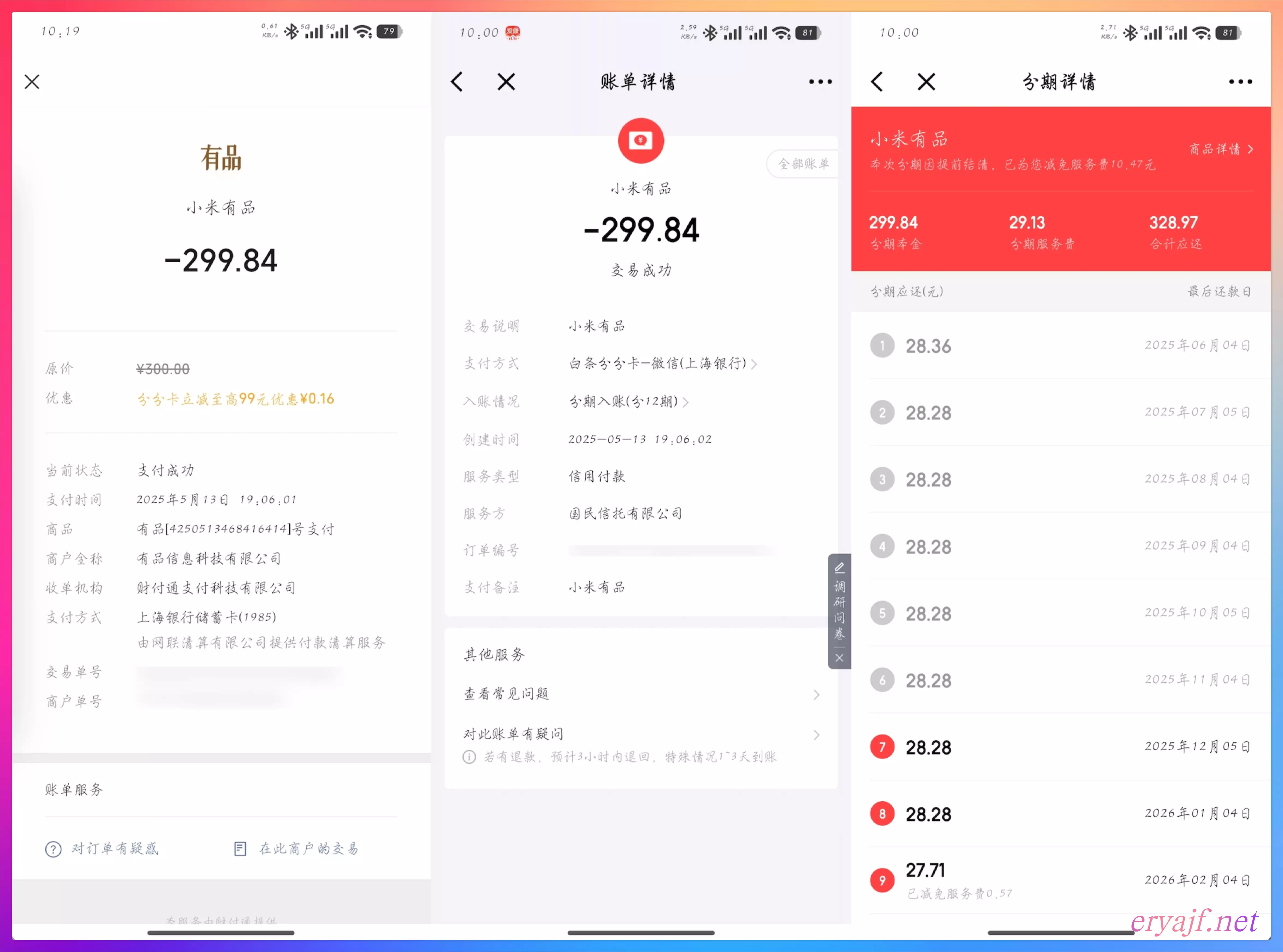 回溯当时支付场景,大概是这样:在小米有品购物,选择了微信支付,支付时看到上海银行储蓄卡提示可以优惠,然后选择了用这张卡支付,最后减免了一毛六,很开心。然而,实际往支付链条深挖,才发现最后被白条分分卡做成了分期,只需要二十九块一毛三的利息。此时此刻,我开心的笑容逐渐消失,转移到了白条分分卡的负责人脸上,大概他的年终奖,我又贡献了一份力量。
