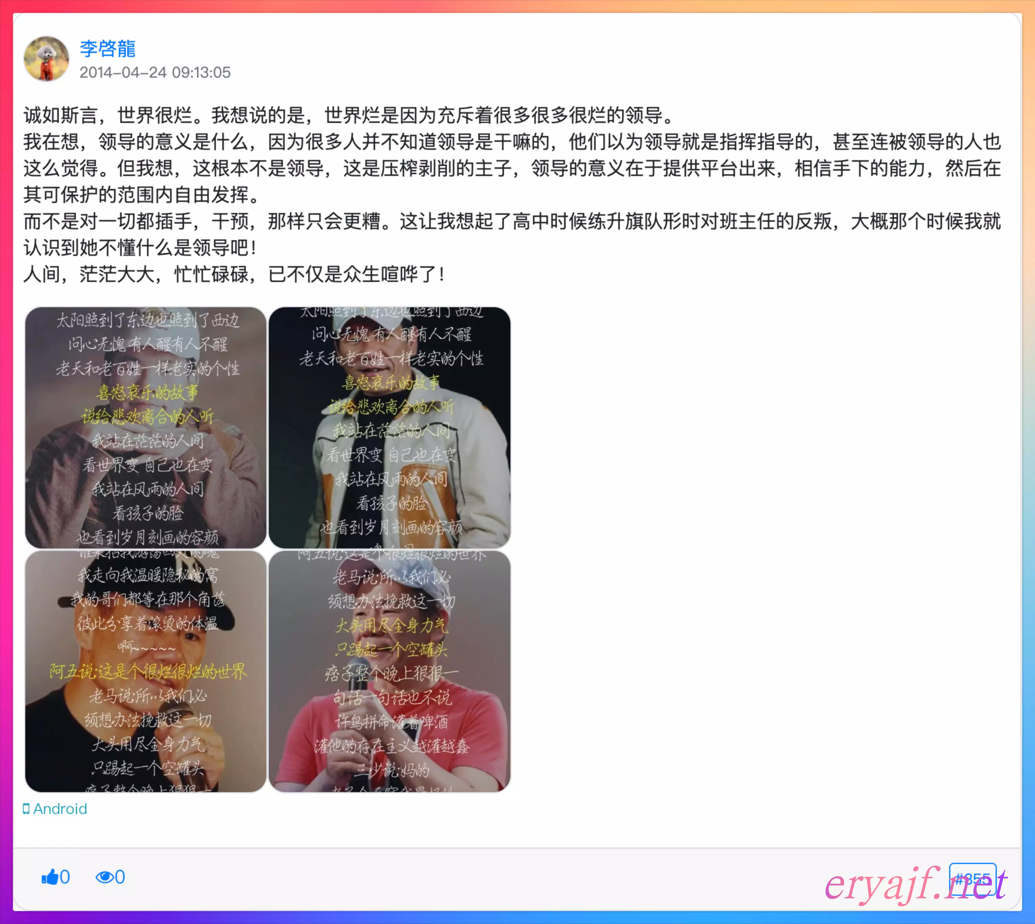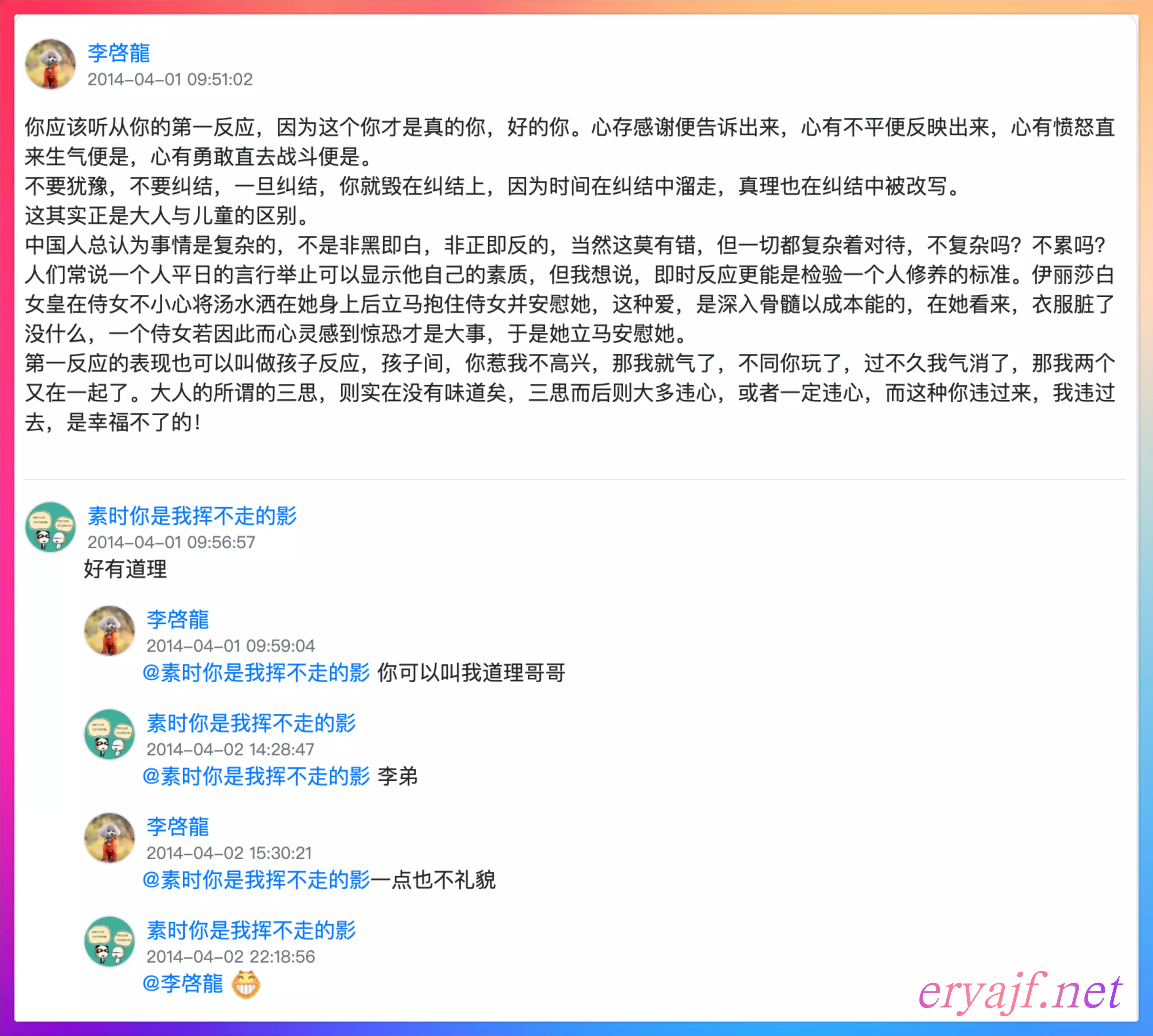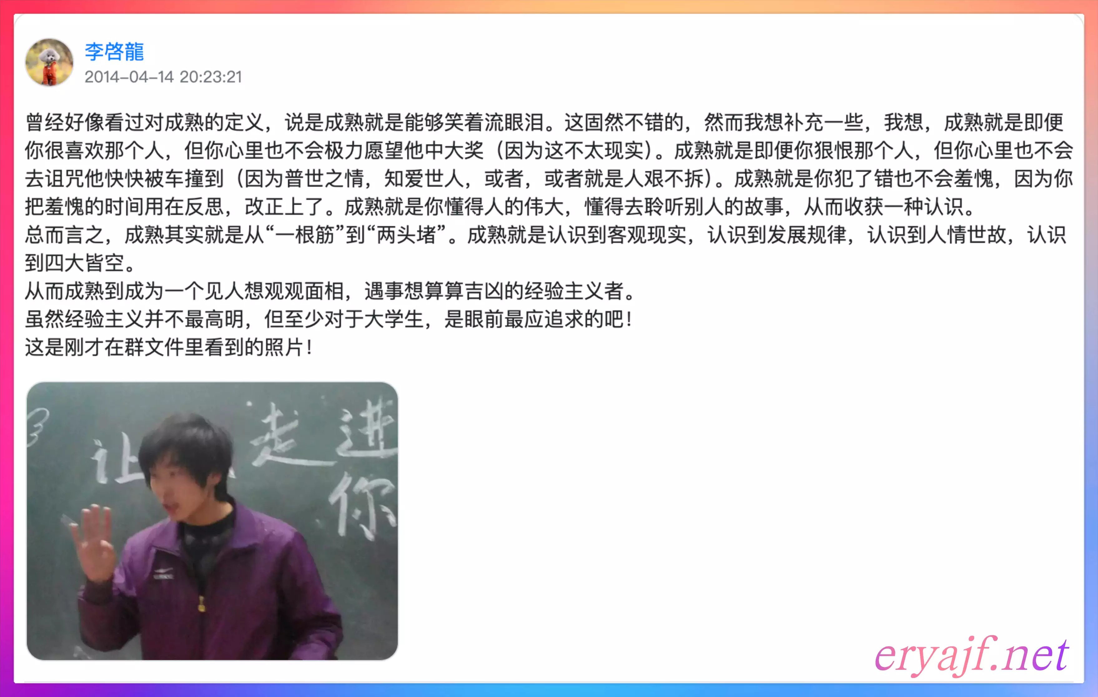 在陈大惠吧看到的一句话,我当时不禁赞叹:哎呀,这话说得太好了。