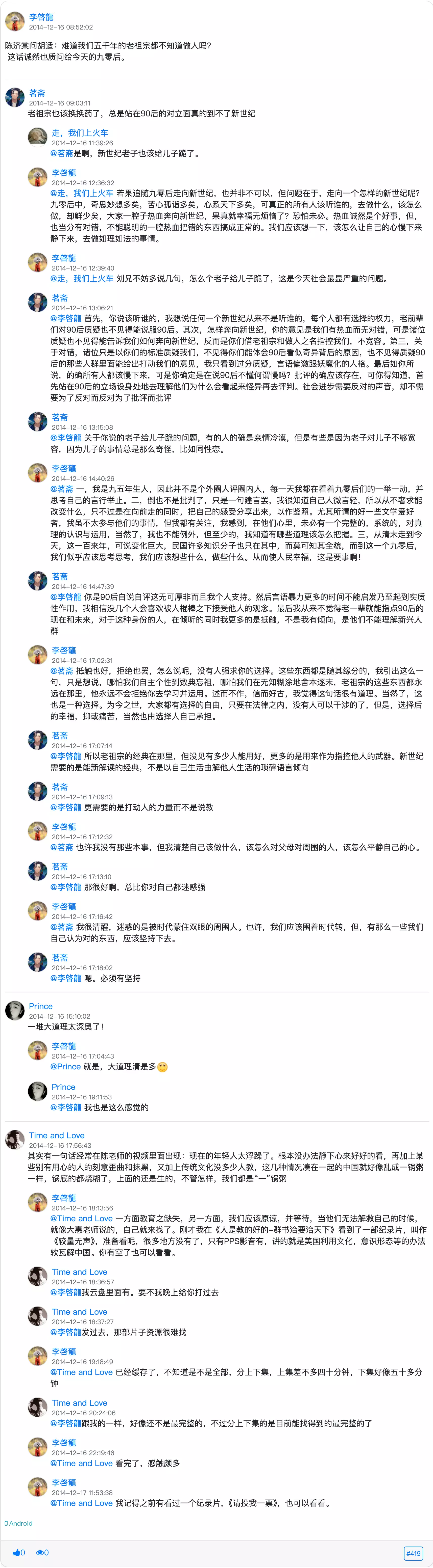 雷锋说过一句话,智慧从劳动中获得。我在上午清理楼顶积雪的时候,胡思乱想了下边的这些。过年回家,不少人见到了都会问上大学了?恩。学的什么?酒店管理。哎呀~~诸如此类,然而我心里自己清楚,我喜欢的是文学,我自己的梦想也在文学身上。于是我就给自己决定,长大了,要尽可能的为自己争取时间,而不是糊里糊涂地毕业就找个地方打工之类。由此我接着想到九零后这么个词,想到QQ上见到的认识的这些文友,我在思考这个时代的文学状态。也许,这么一种说法是有些道理,历史上的文学状态,人物都是要与时代有关系的,譬如战国时期的那几百年,宋朝诸儒,上世纪“五四”,,,那么,我们九零后这一层会做些什么呢?可以先看一下八零后,八零后似乎找不出大师呵,郭敬明的书我也未曾读过,韩寒的以文学为业余,全不见文学后边的“文人”,嗨呀,要断层了么?七零之后,再无文学?现在看我们九零后自己吧,别的什么也不说,书,书你读了没?没读,拜托,只是见过枪你就能打仗吗?九零后有不少写诗的(据我所认识的),但我只问一个,诗人同志,你思考了没有?你那没有思考的生活还写个什么?不知道你是否被问过为什么喜欢写诗,也不知道你自己是否想过这个问题,你会做什么回答。我只知道,顾城对此问的答案是,文字太泛滥了,像钱一样脏,我要用诗歌把它洗干净。(这是有经平日思考的即时答案)因此我突然想出一个倡议,你若果真是喜爱文学的,那么就不要让自己的心是颗着急,浮躁的心,着急找工作,着急娶女人,着急去死,浮躁读书不动,浮躁遇事随势。在一切可利用的时间里,读书,思考。后来的我又想毕竟时代有别,那么我们的路在哪里?胡塞尔说“我们切勿因时代而放弃永恒”,第一次看到这句话的时候我很觉得有理,然而今天我突然想到,时代和永恒究竟指的什么?就只是哲学意义上的吗?我看未必,永恒,我理解应该是时代中的永恒。如此便明了了,我们九零后文学人要带头梳理重要的不重要,以及不重要的重要。也许我们没有那样的时代,(顾城就是当时的刘德华,李白就是当时的李宗盛),但我们也拥有这样的时代,国家发展极其的快,中西各种呈于各人眼前,中国不在是中国,而是在地球村里边的一员,于是,传统与西方哲学的碰撞,在人们的生活富裕的路上,人们的观念,关系等等的,在路上,我们无知勇敢,我们传统有理,你看看,我们的少年恋爱,男女性爱,中年婚姻。国民教育何去何从,新的年轻人如何把这新与上一代平衡,我们的信仰究竟在哪?等等等等,因此我们也逢着好的时代,一个大有用武之地的时代。我常常想,文学是什么,这个问题也许是“诗无达诂”的,但我想,文学就是生活。正是这个理论我才不屑于韩寒,郭敬明那一些,,说到底,也许我自己的传统也不在少数,但在路上,我愿意以学习的态度面对一切,并尽可能与邪恶斗争。我QQ上的九零后文友们,你们想着什么呢?