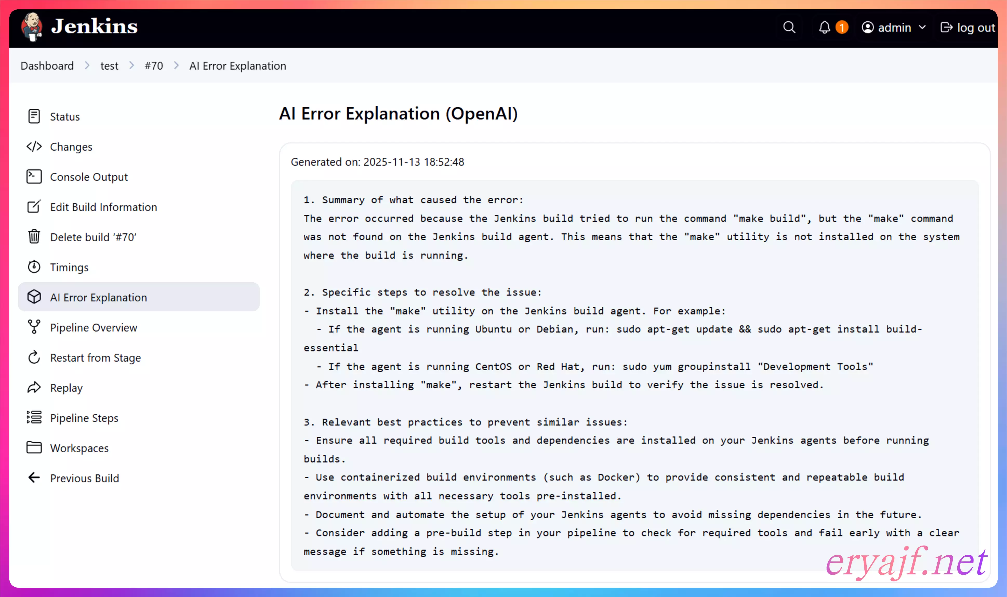 - 项目说明:一个 Jenkins 插件,用于在 CI 构建失败时,自动分析失败日志,并给出清晰、可读的错误解释和排查建议,帮助开发者更快定位问题。