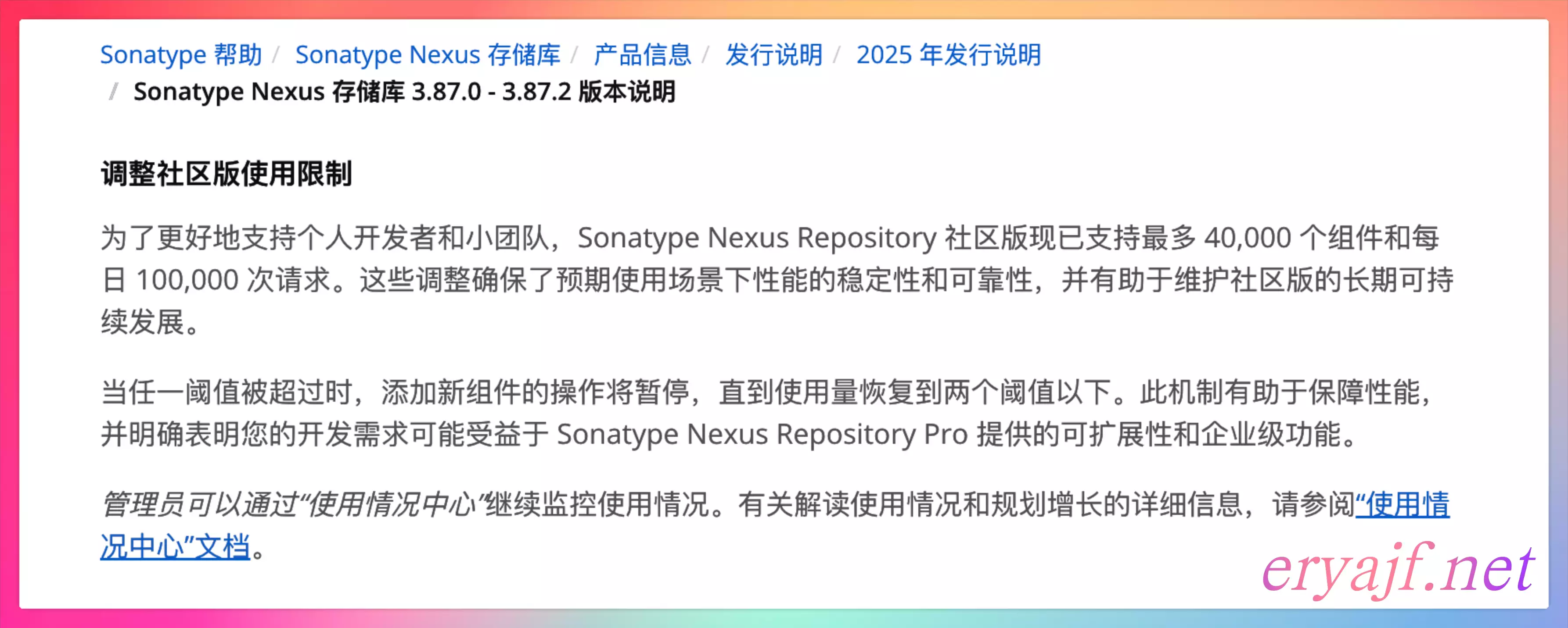 最近折腾 Nexus,发现默认部署的最新版本首页有组件数量限制的展示,之前一直没有留意,经过一番了解之后,发现 Nexus 社区版的权益,也在进一步收紧,如果公司打算部署一个 Nexus,做好版本选择就非常关键。