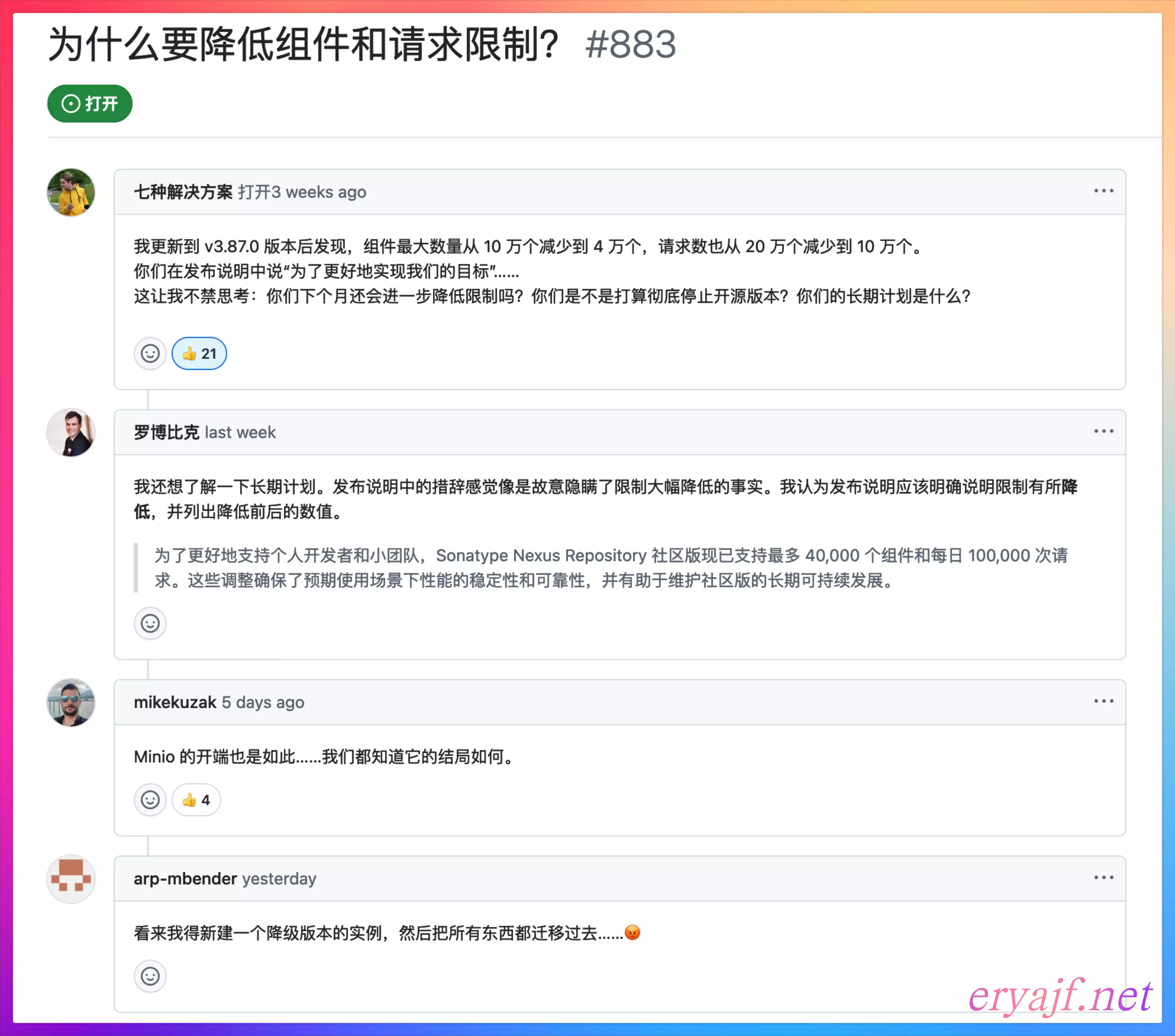 在 3.87.0进一步降低限制之后,开源社区即有人提出担忧:883 (opens new window)