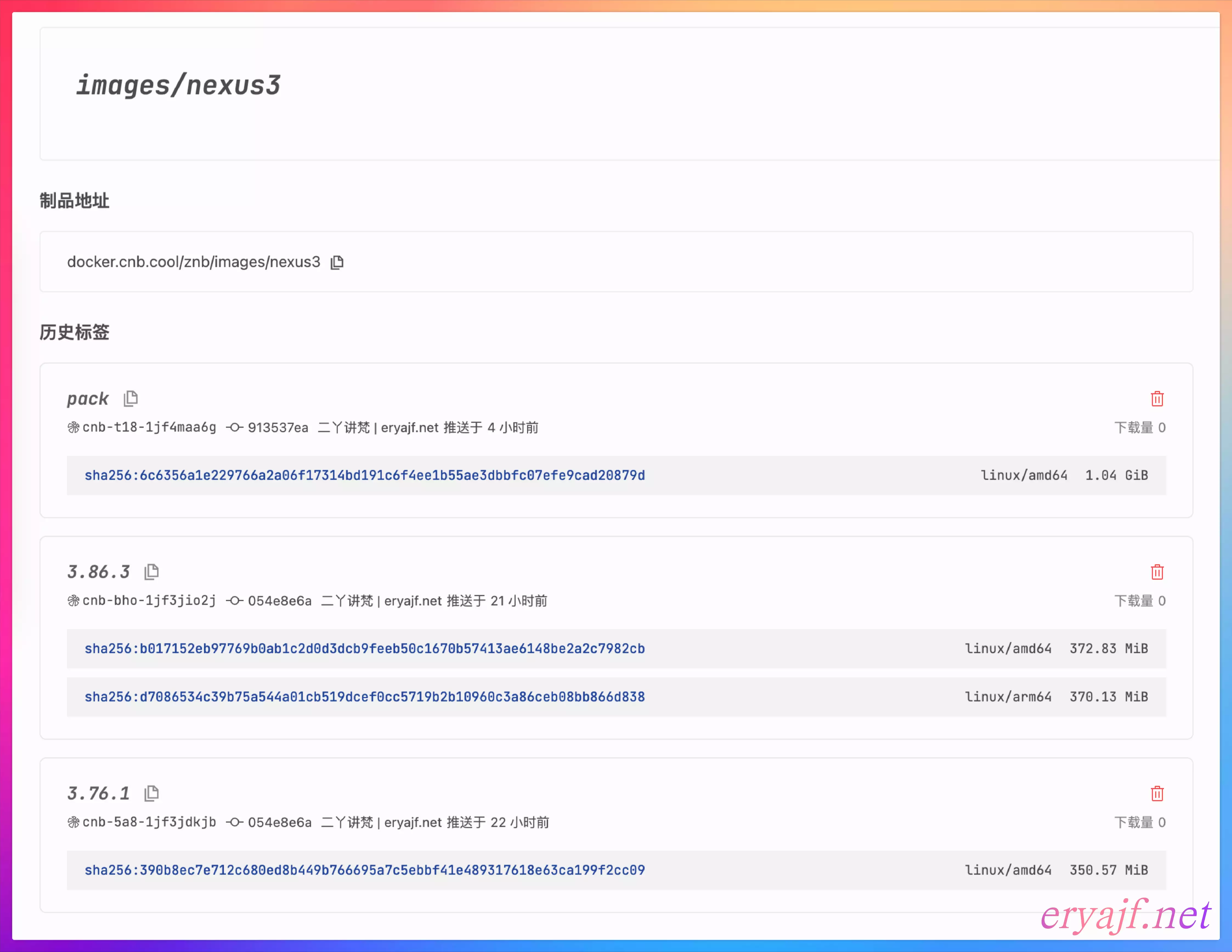 其中的 pack 标签,是考虑到可能有同学不习惯使用 docker 部署,就把对应的软件包也做了下载归档。