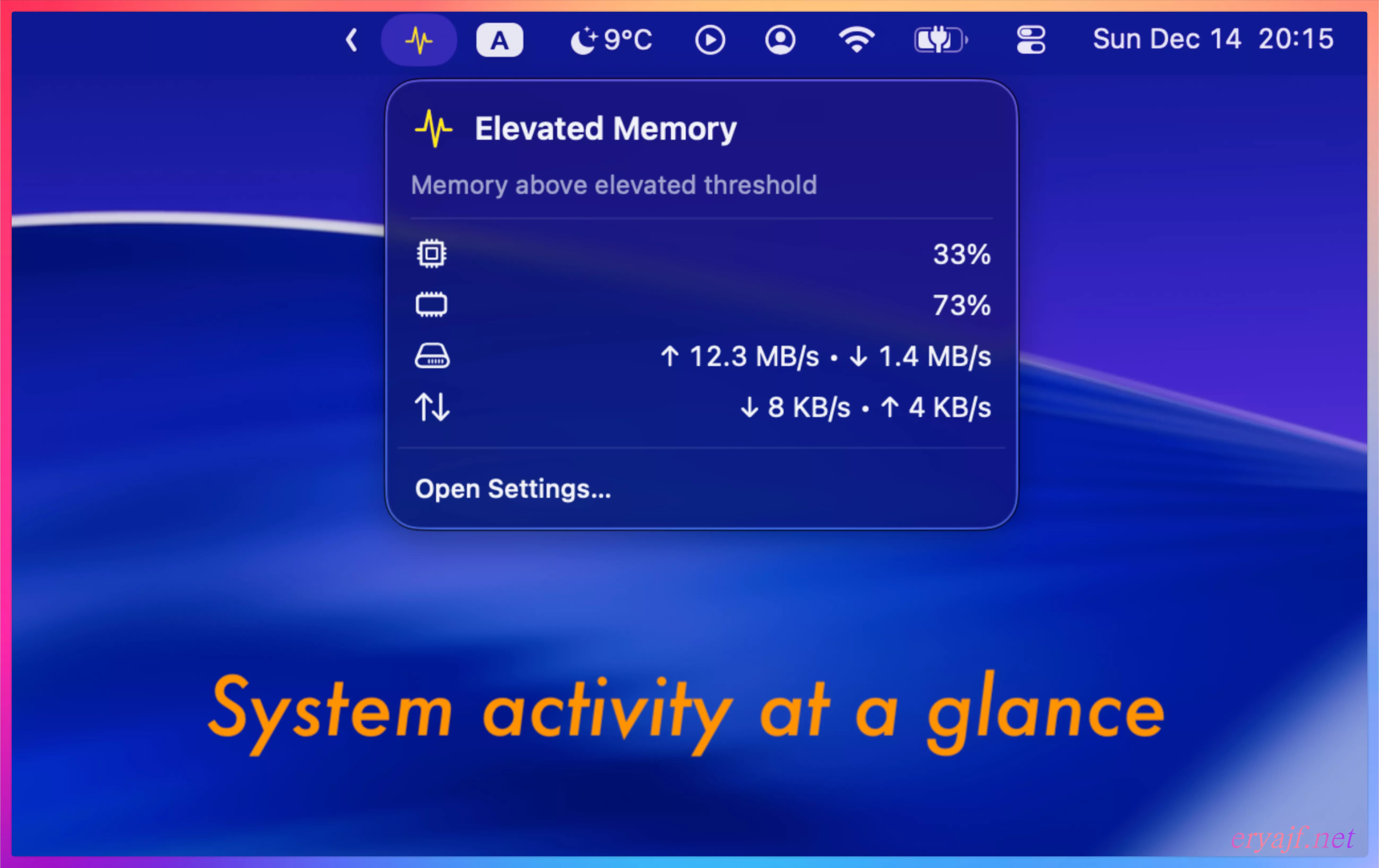 - 项目说明:一款 macOS 菜单栏实用工具,它会对 CPU、内存、磁盘、网络和进程数据进行采样,以便您及早发现问题。